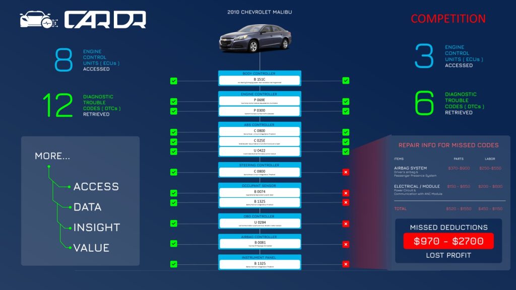 CarDr's OBDIQ the world’s fastest, most comprehensive mobile vehicle diagnostic app and mobile OBD adapter, designed specifically for automotive professionals.