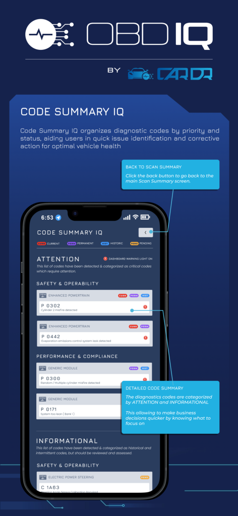Code Summary IQ helps users understand the severity of issues and take the necessary steps to maintain vehicle safety and performance.